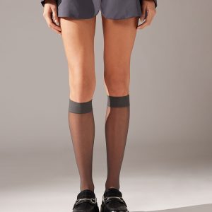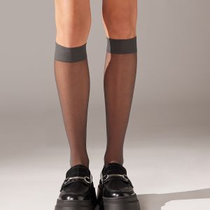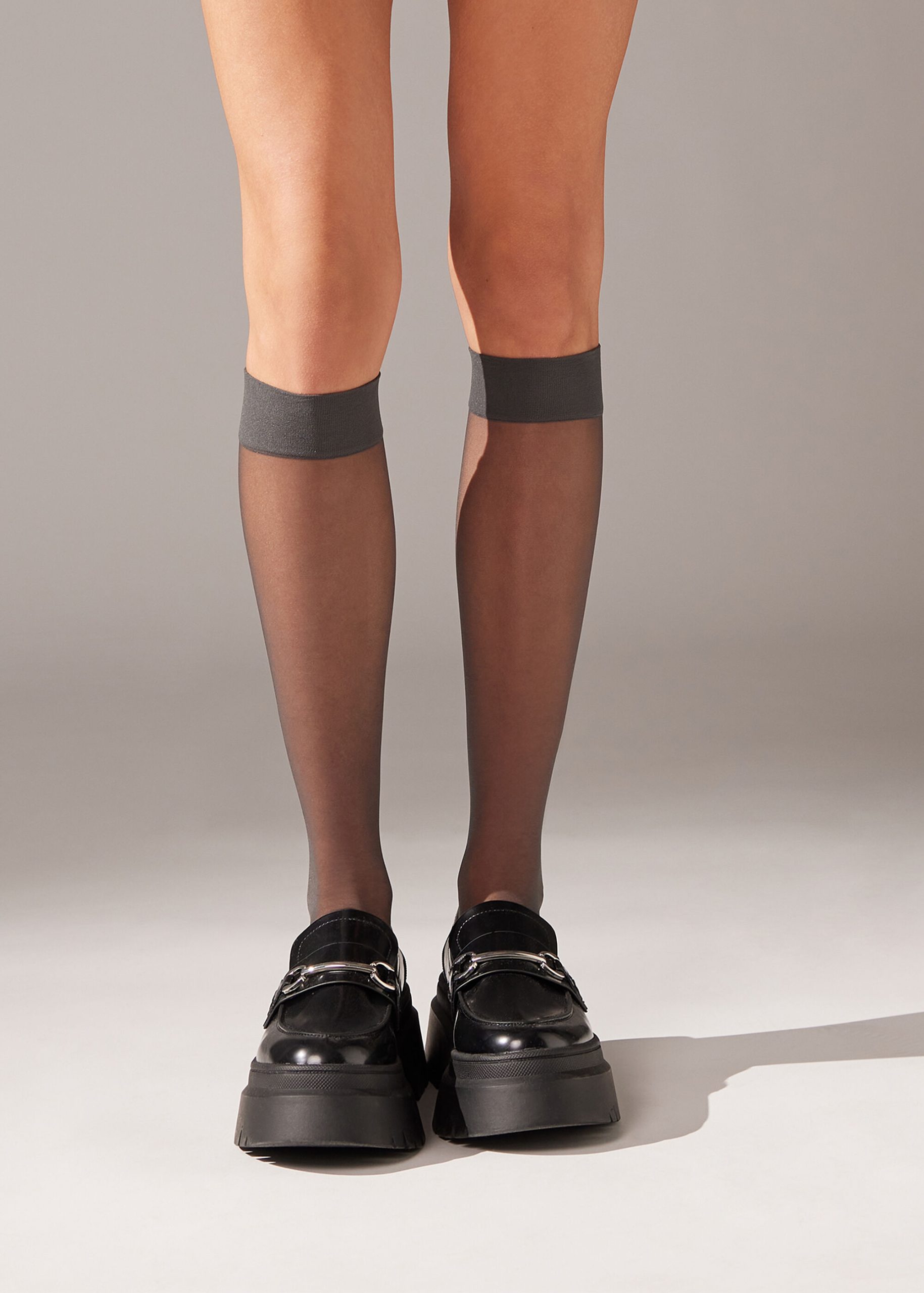 Women’s 20 denier knee-highs with a comfort cuff and sandal toe.
