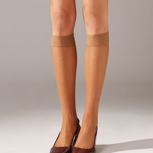 Women’s 20 denier knee-highs with a comfort cuff and sandal toe.