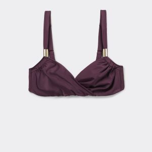 Unpadded balconette bikini top with underwire, embellished with an elegant central crisscross detail. The structure of the cups and the wide fit at the sides provide good support for larger busts. The compact fabric, designed to exalt and enhance the body’s curves, ensures excellent support and is studied to make every woman feel at ease without constraint. Adjustable shoulder straps. Back closure with two hook-and-eye closures to improve the fit of the underband.