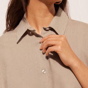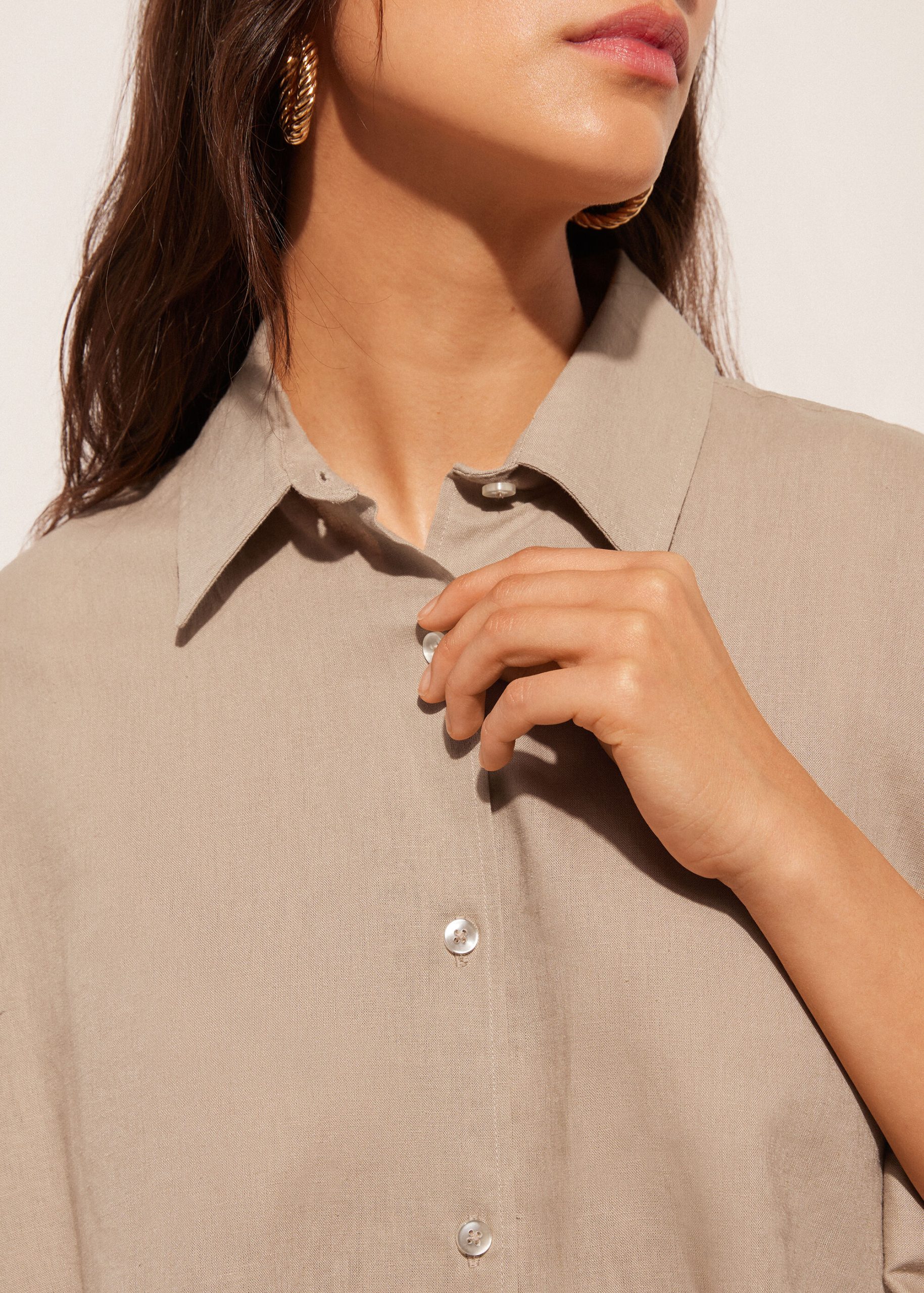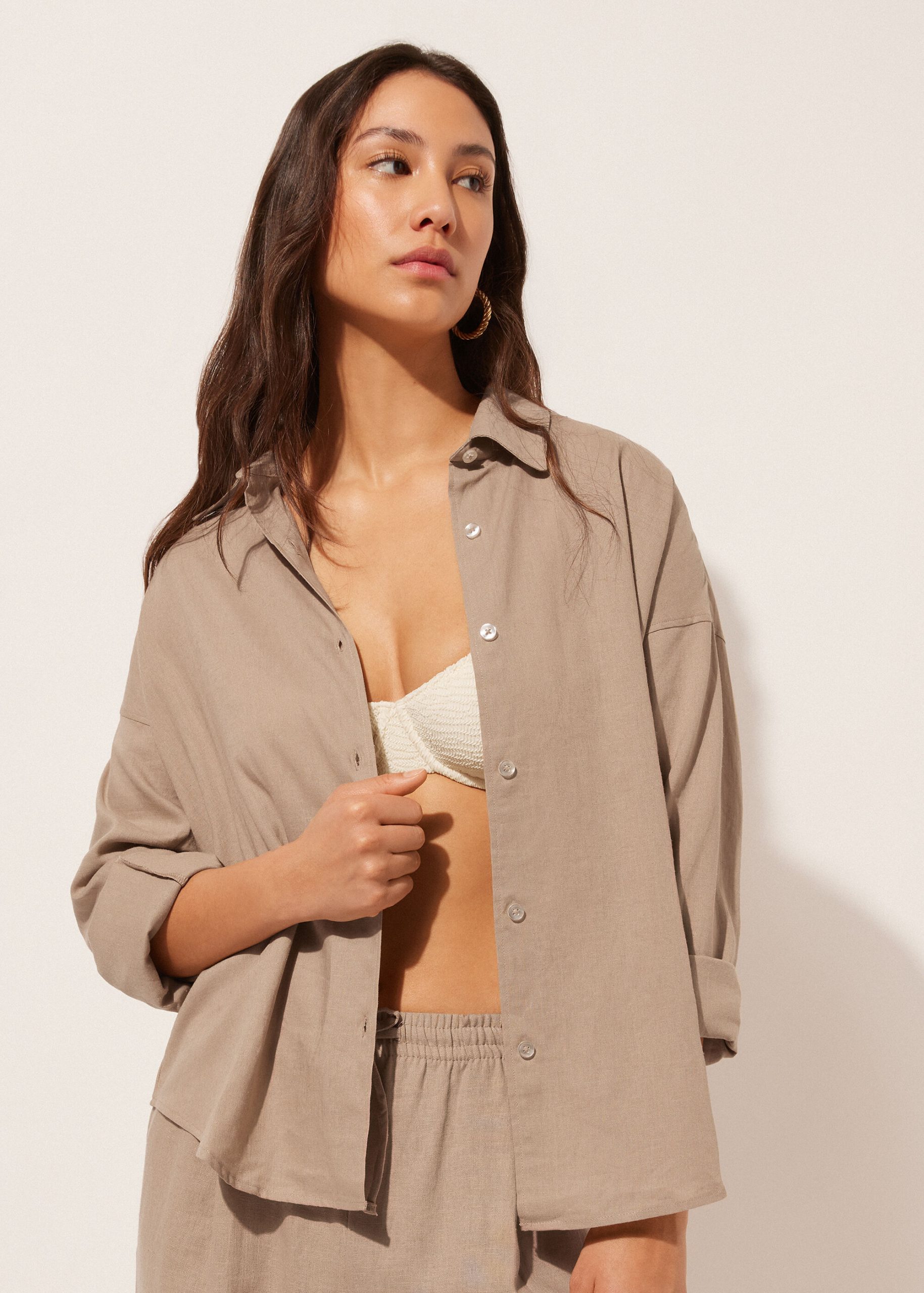 Cropped button-down shirt in linen and viscose, perfect for those who love natural fibers, with shirt collar and long sleeves. With a comfortable fit and a fluid design, it is perfect for pairing with the shorts or pants from the same series.