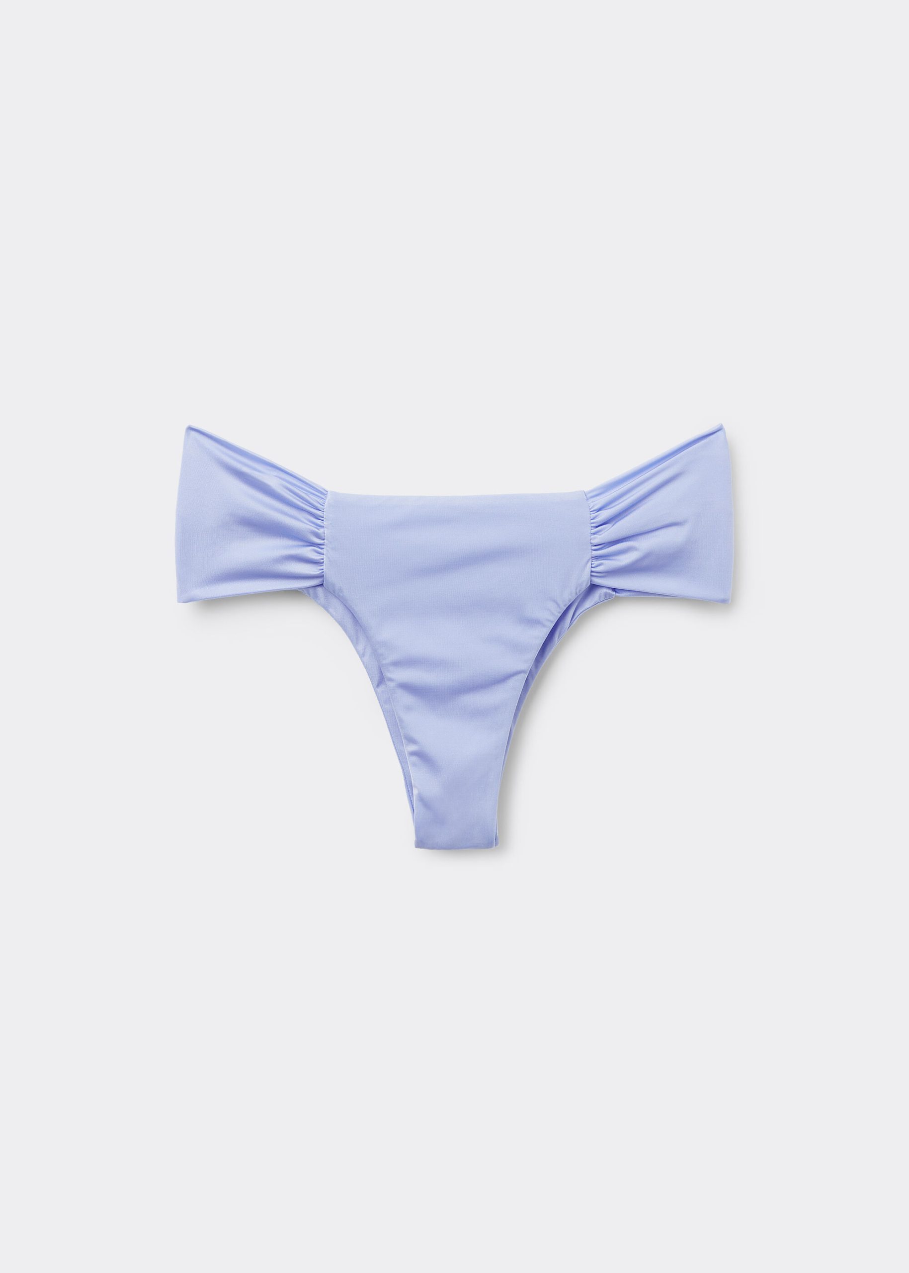 Brazilian bikini bottom with draped fabric at the sides that allow the height to be adjusted. The style features a particularly soft, shiny, silky-effect fabric. Fully lined and with invisible seams.