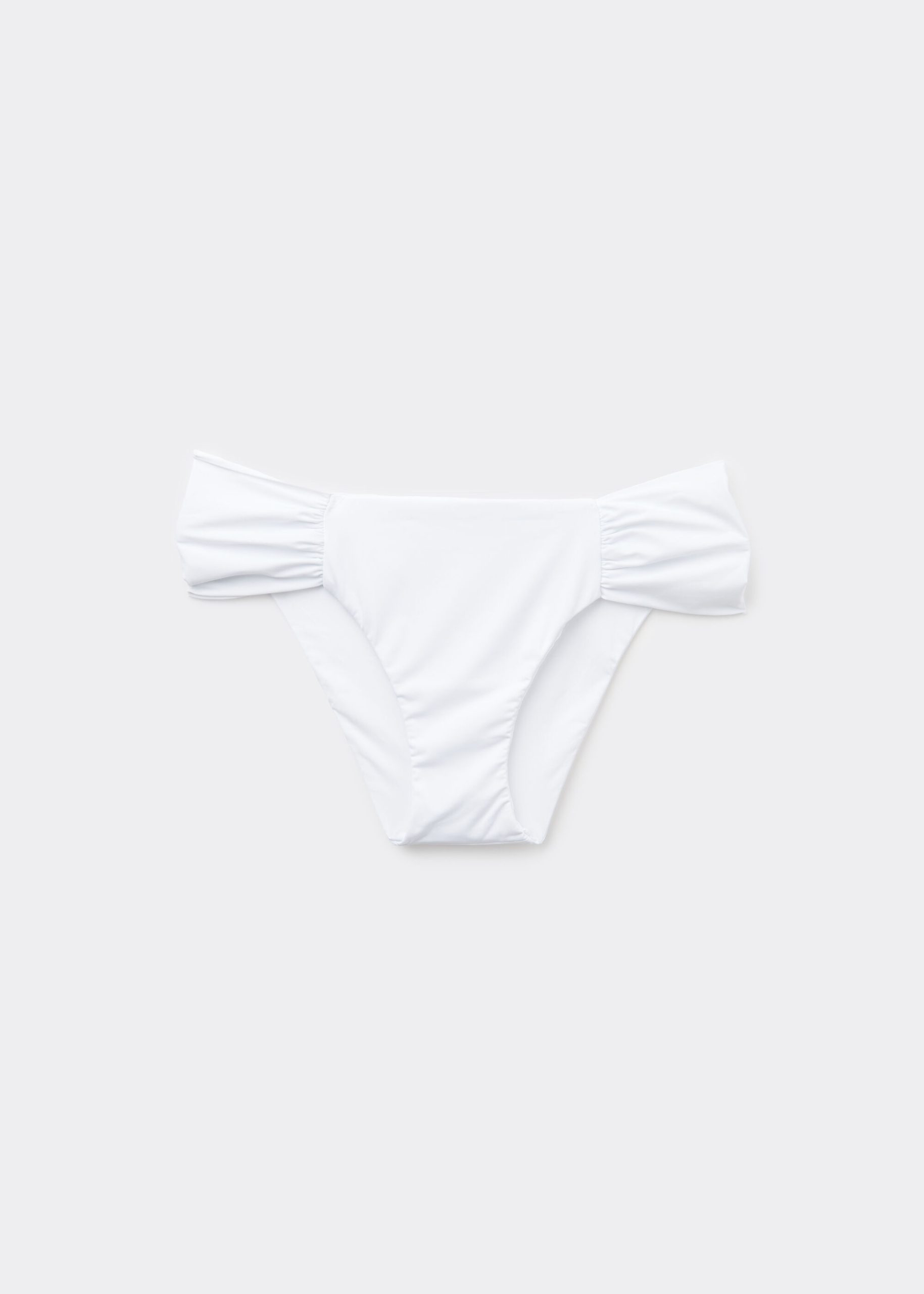 Bikini bottom with draped fabric at the sides that allows the height to be adjusted. The extremely soft fabric makes it pleasant to wear, offering a light and comfortable feel on the skin. Fully lined with invisible seams.