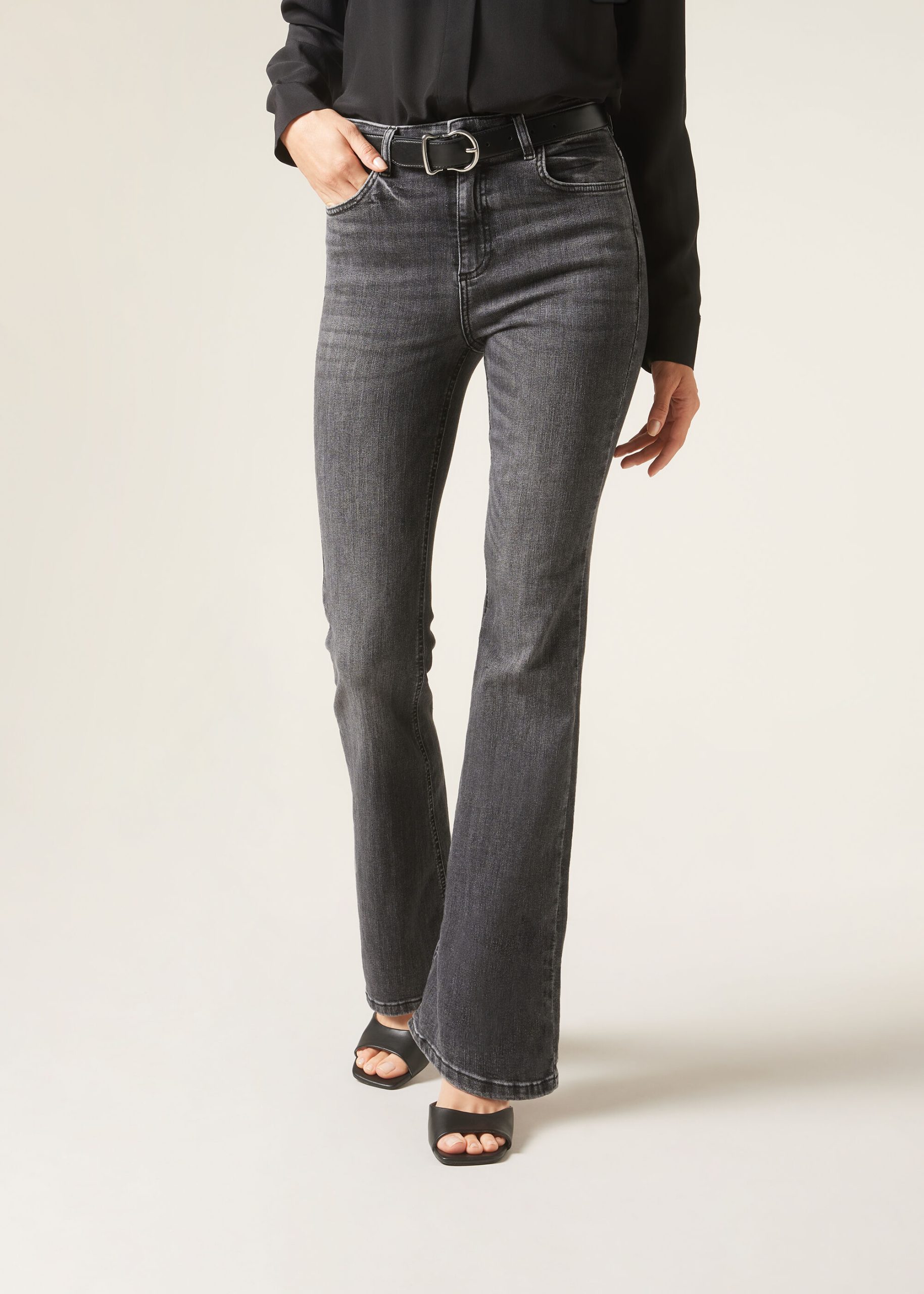 Women’s five pocket flared jeans with belt loops, zip and button closure, and rivets with the Clz logo. Made of ultra stretch denim fabric, these flared stretch jeans offer exceptional comfort and a perfect fit, ideal for those seeking style and comfort in a single piece.