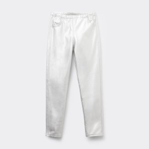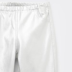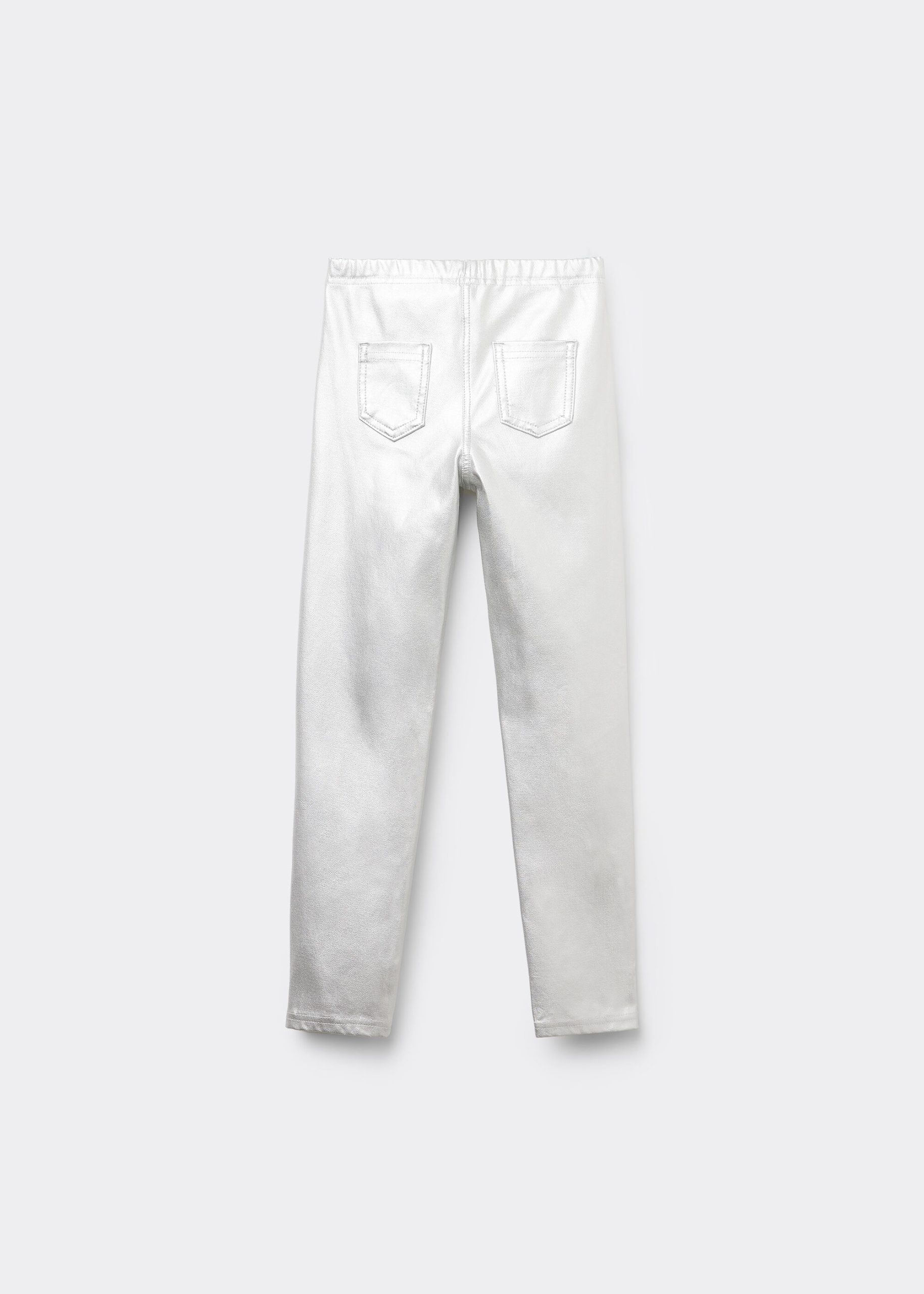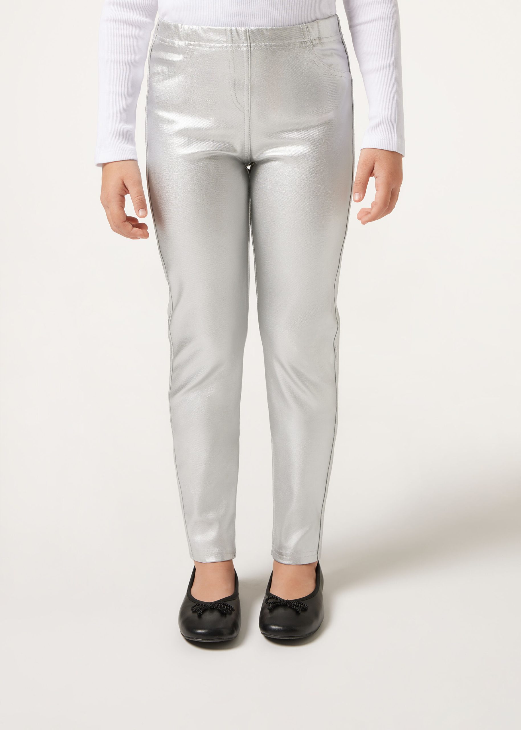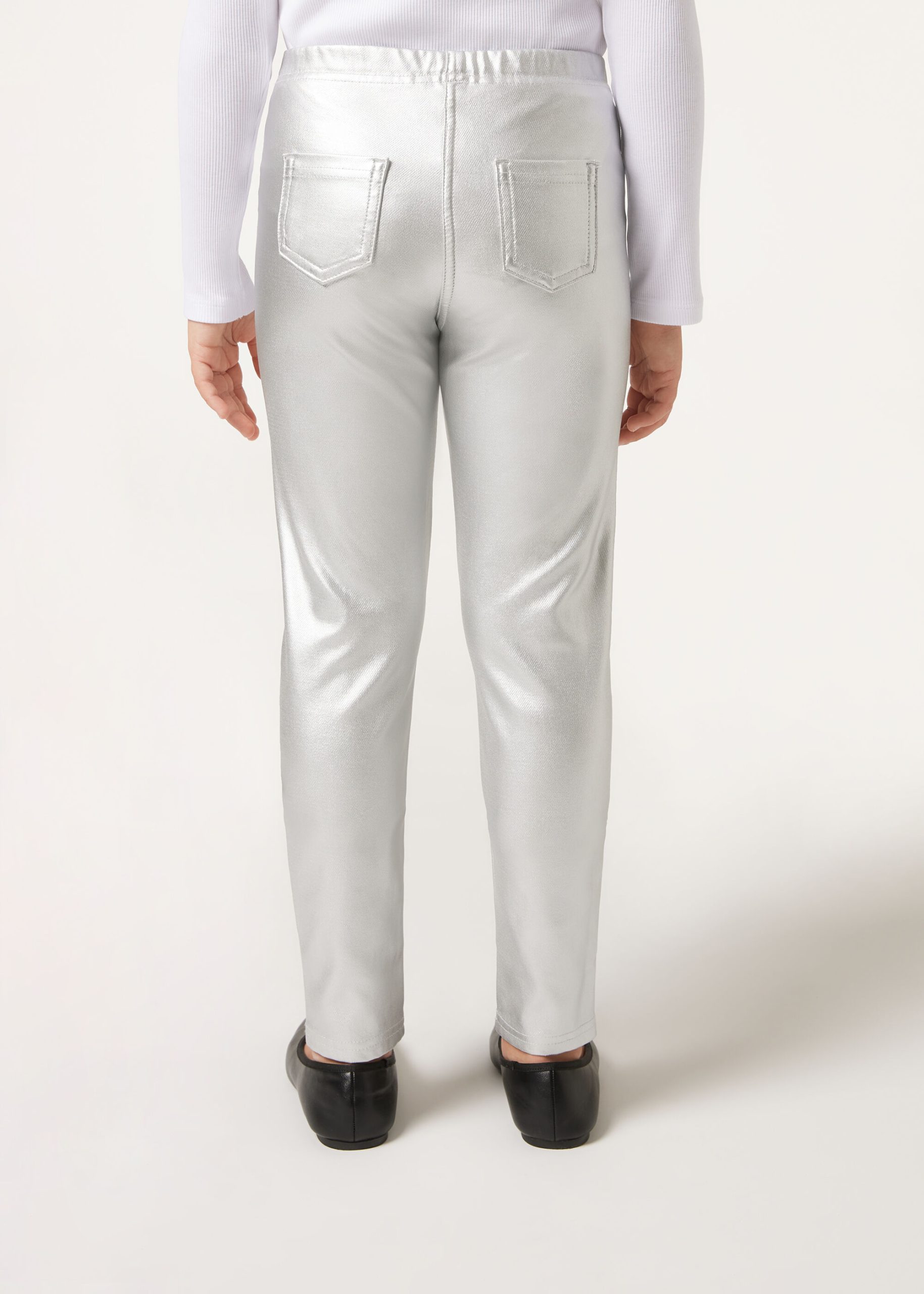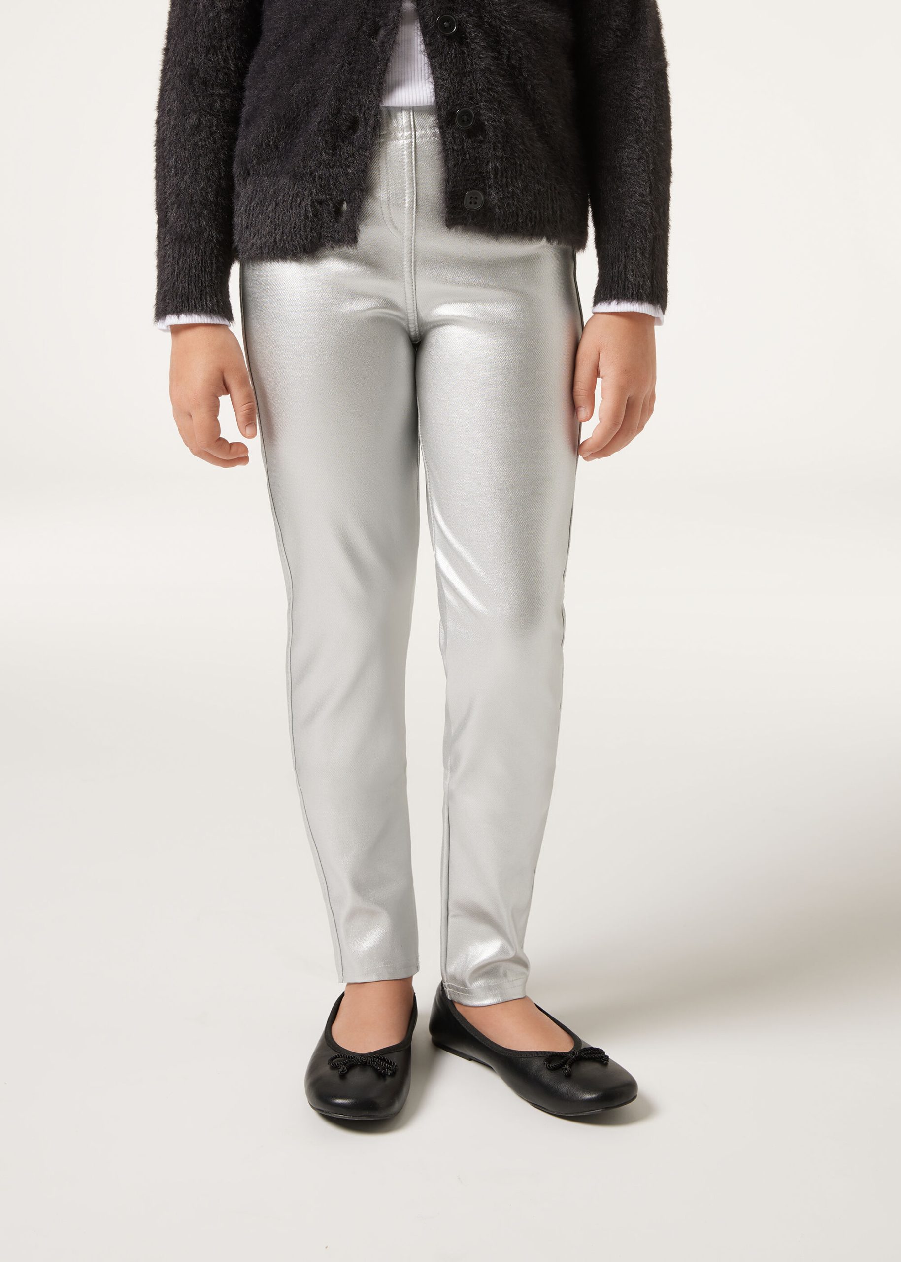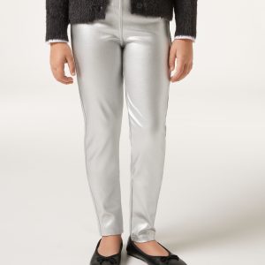 Girls faux leather leggings made in stretch fabric, featuring a comfortable elastic waistband. The have faux front pockets and a faux fly, with real back pockets for a touch of functionality. The adjustable internal drawstring at the waist ensure a perfect and practical fit for every adventure. To pair with matching leggings MODP1223 for mom.