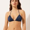 Push-up underwire bikini top with especially soft, graduated padded cups. The style features a bright fabric with a silky effect with ruffles. Adjustable straps and back tie closure.