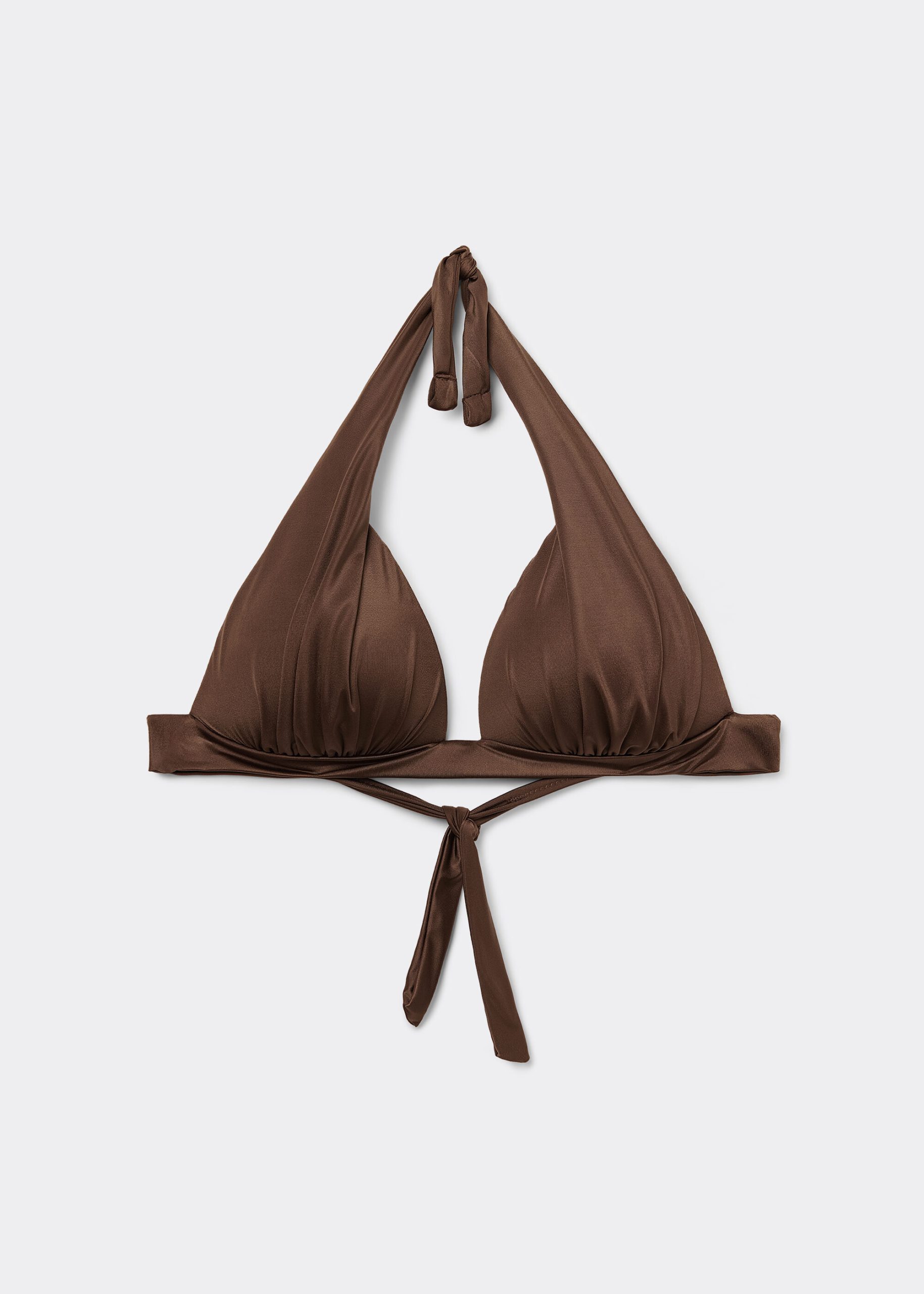 Graduated Padding Triangle Swimsuit Top Shiny Satin