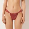 Wireless fixed triangle bikini top with graduated padded cups that add volume to enhance the décolleté. The style features a bright fabric with a silky effect, embellished by ruffles. The shoulder straps have eyelets on the ends so they can be hooked onto the back band or tied behind the neck. Back tie closure.