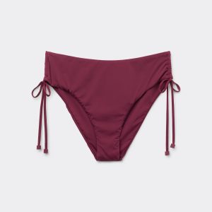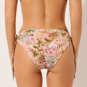 High waist bikini bottom with side drawstrings to adjust the fit of the leg openings, with squared aglets. The extremely soft fabric makes it pleasant to wear, offering a light and comfortable feel on the skin. Fully lined and with invisible seams.