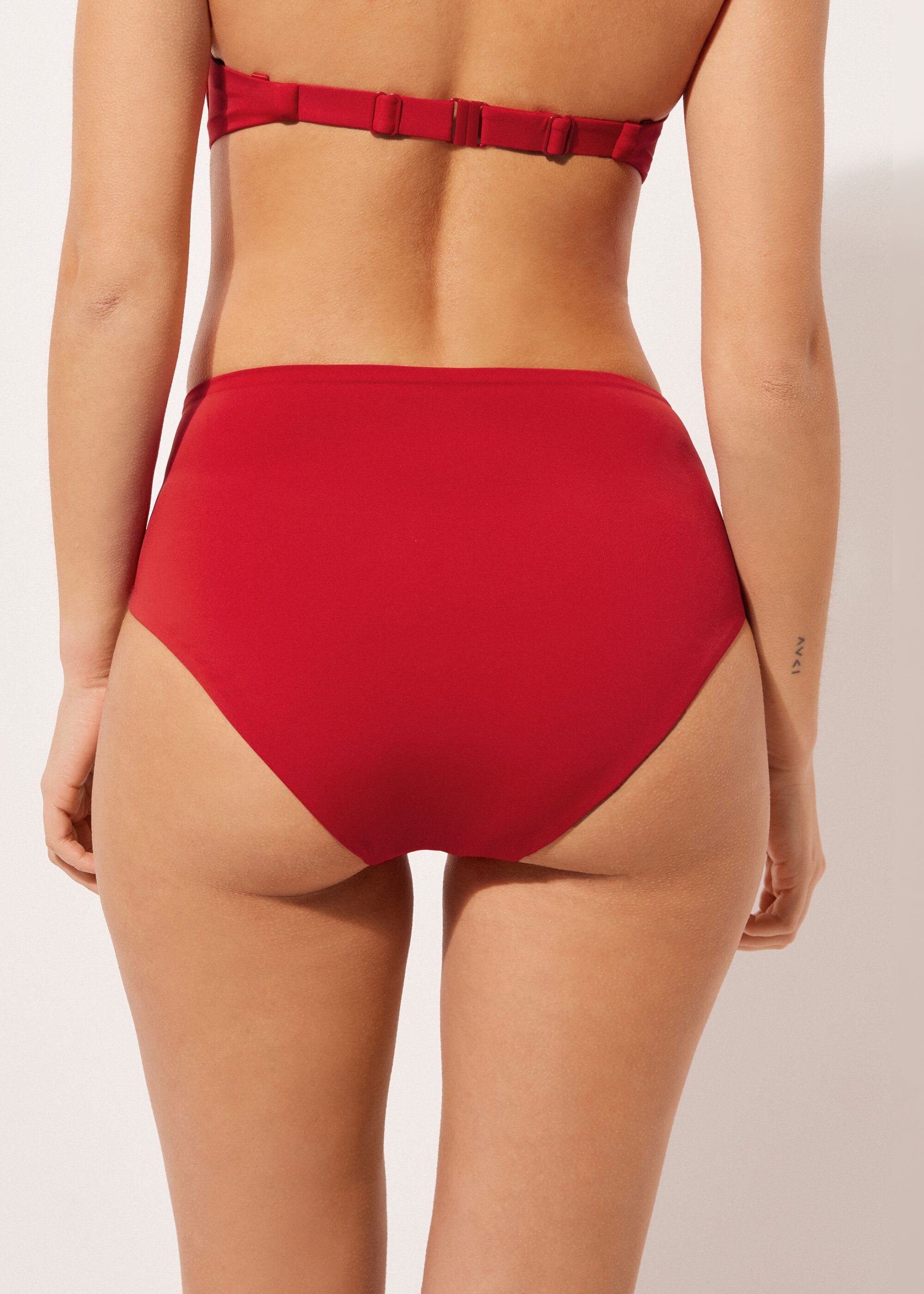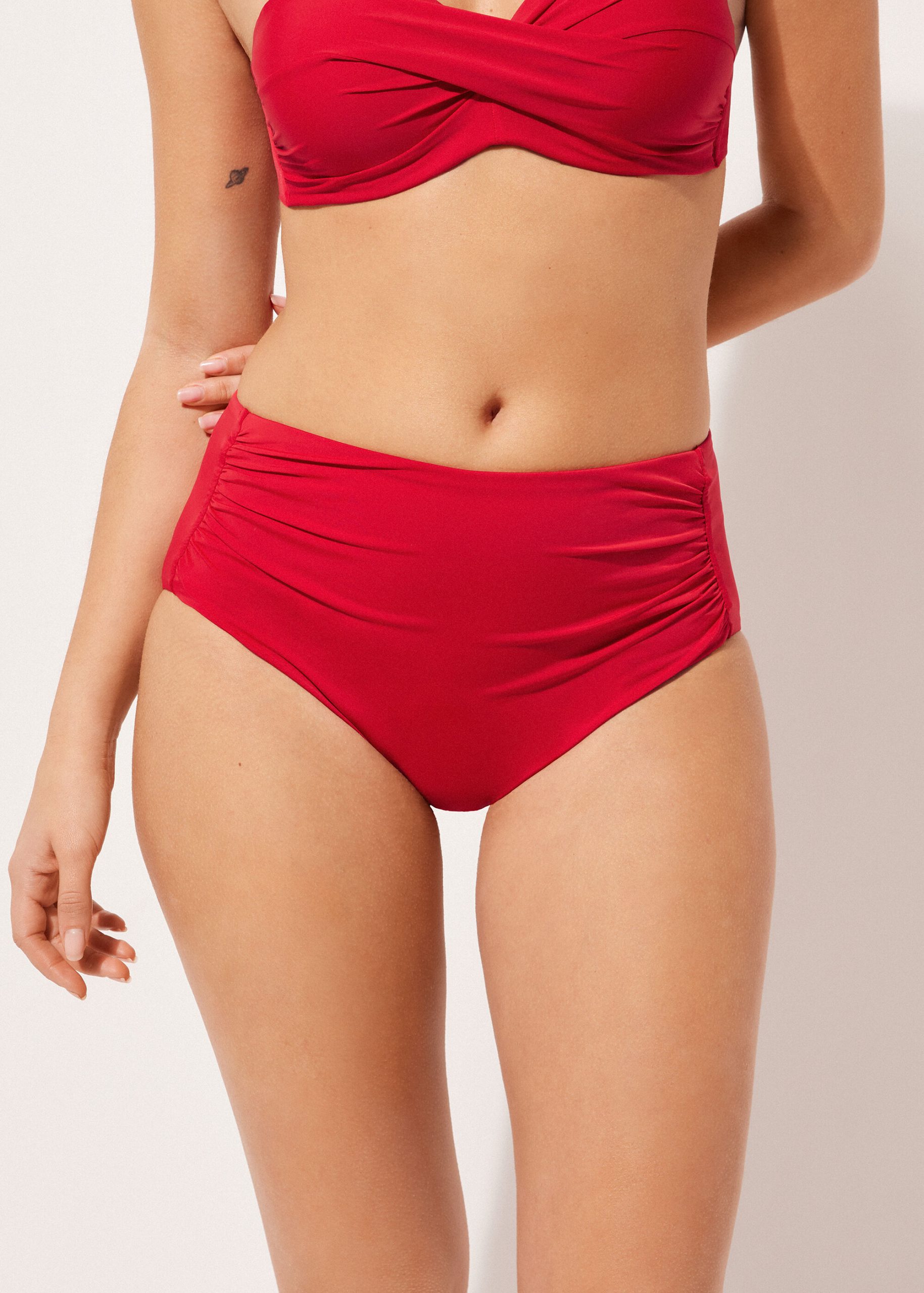 Bikini bottom with side ruching and a slightly high waist with a shaping effect on the abdomen, ensured by a special tulle at the front. The extremely soft fabric makes it pleasant to wear, offering a light and comfortable feel on the skin. Fully lined with invisible seams.