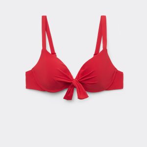 Push-up bikini top with lightly padded cups and underwire to highlight the décolleté. The special bow detail at the décolleté helps to adjust the push-up effect. The extremely soft fabric makes it pleasant to wear, offering a light and comfortable feel on the skin. Adjustable straps. Back closure with two hook-and-eye closures to improve the fit of the underband.