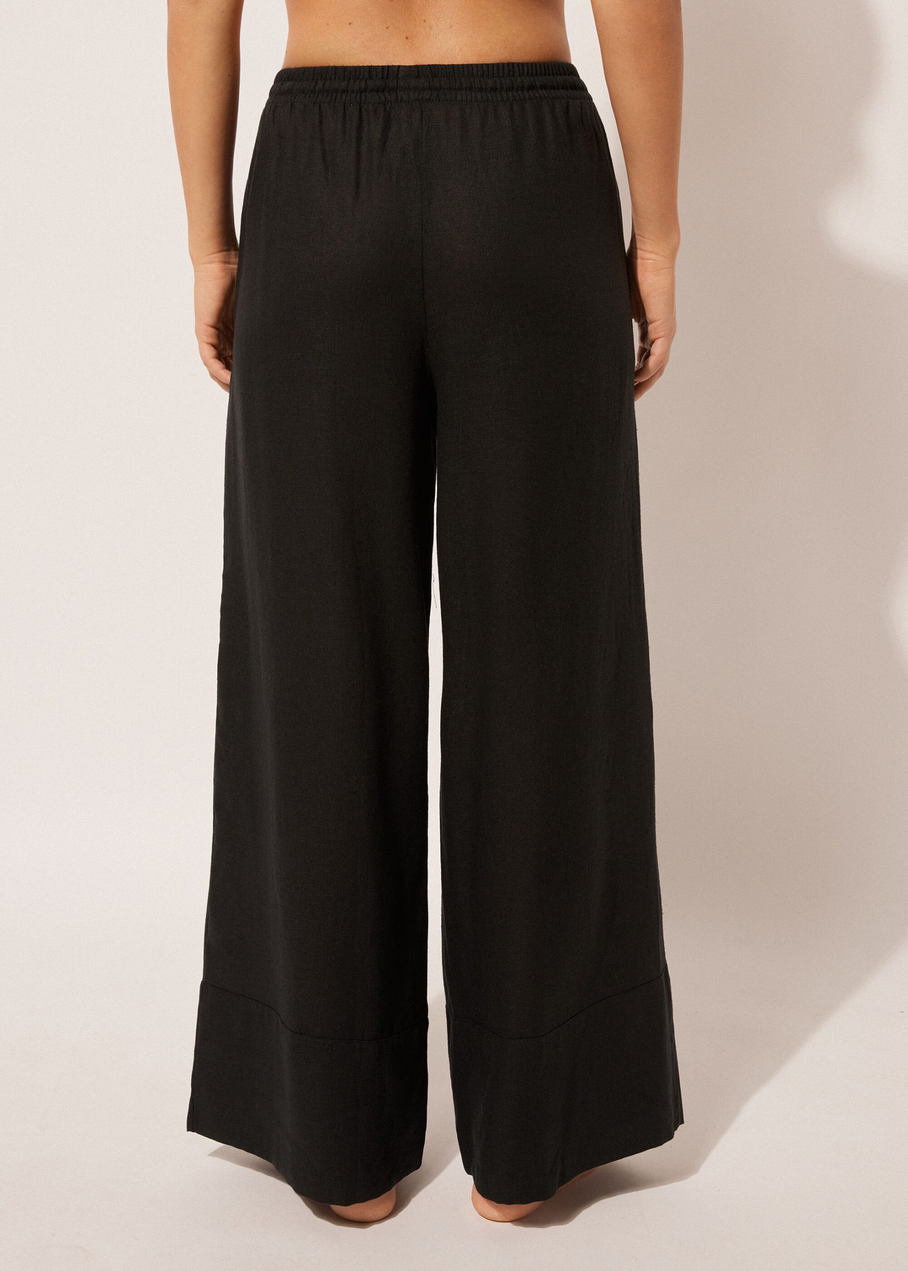 Palazzo pants in linen and viscose, perfect for those who love natural fibers. With a relaxed and comfortable fit, these pants offer a fluid and modern design, perfect for pairing with the 0BDA143 shirt.