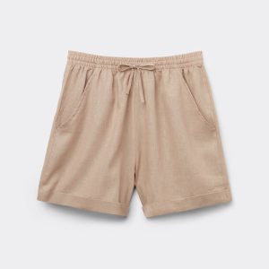 Shorts in a linen and viscose blend with turned up hems, side pockets and a soft elasticated waist with a practical drawstring. Perfect for a cool and smart look for a summer’s day.
