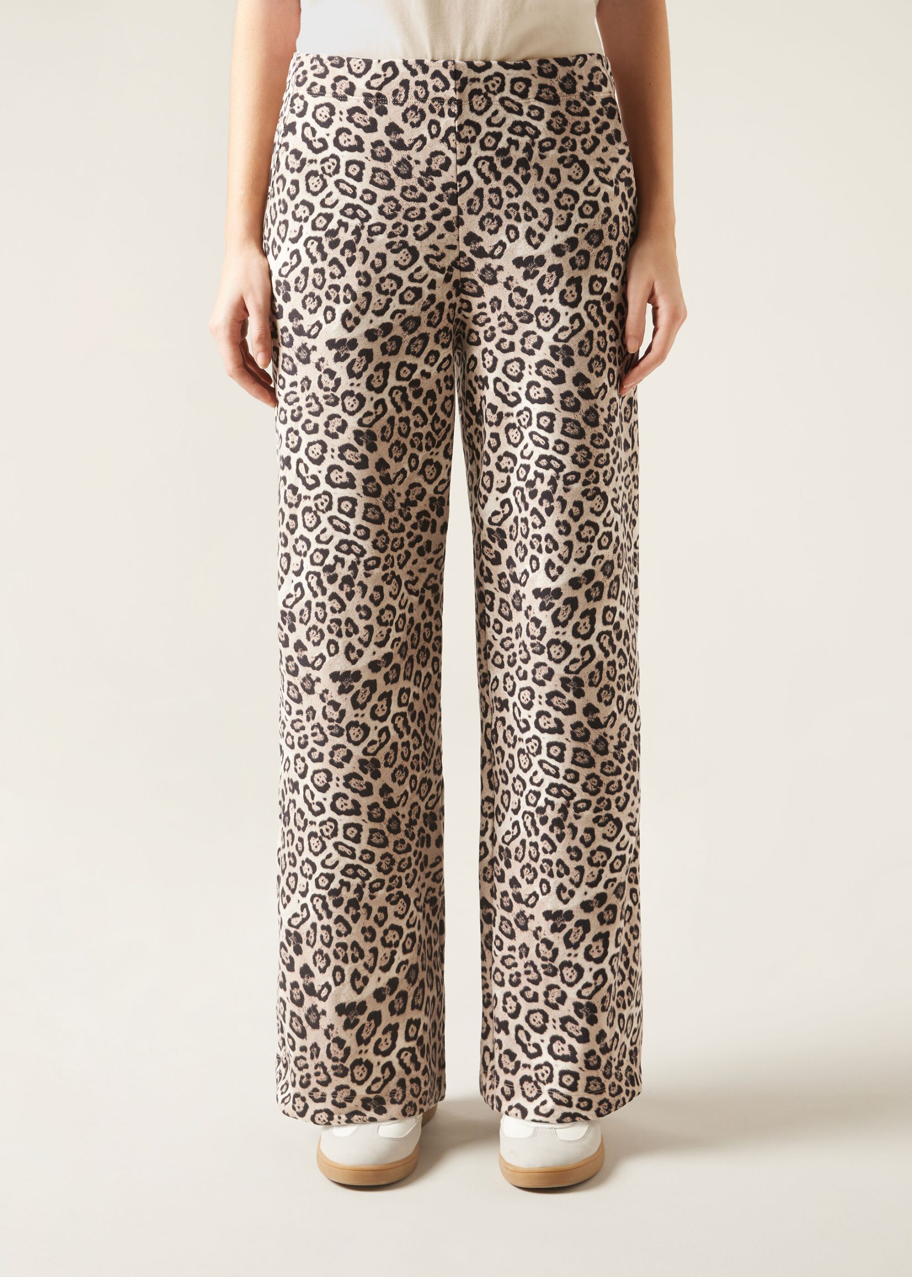 Palazzo pants in high quality soft touch modal blend fabric, supple and comfortable to the touch. Feature an elastic waistband and actual pockets, with an animal print that gives a touch of bold and modern style.