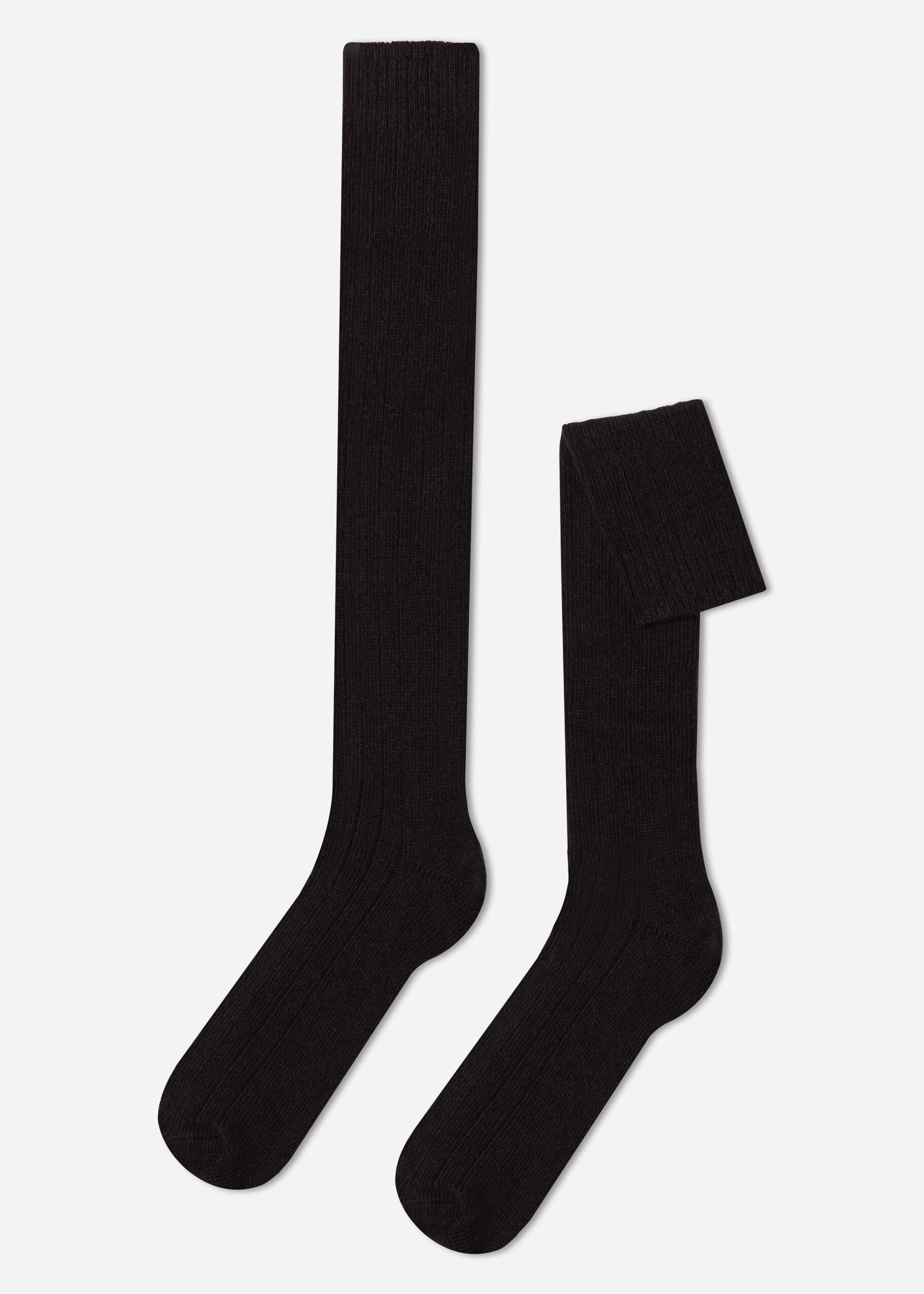 Men’s Ribbed Wool and Cashmere Long Socks