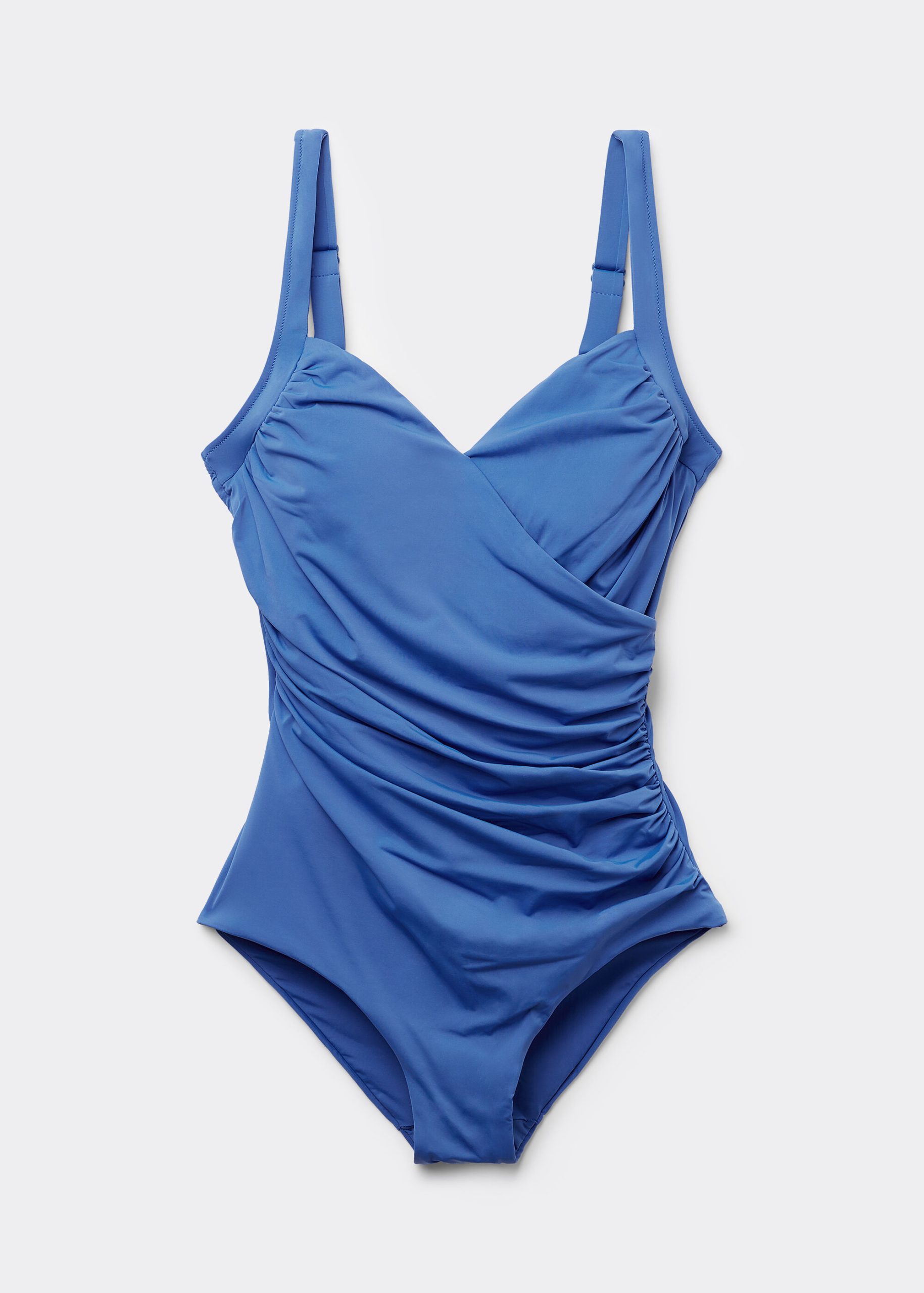 One-piece swimsuit with lightly padded cups and underwire. The crisscross draping shape and highlight the silhouette. Shaping effect on the abdomen. The extremely soft fabric makes it pleasant to wear, offering a light and comfortable feel on the skin. Adjustable straps. Fully lined in back. Regular bottom coverage in back.