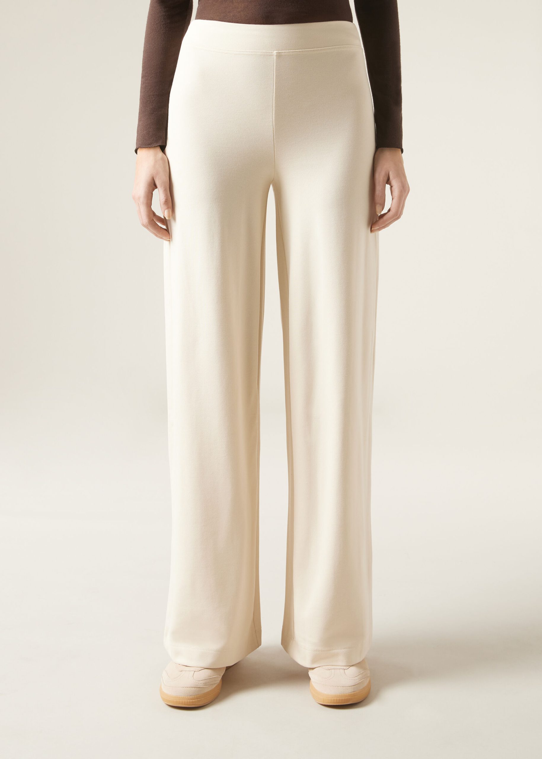 Women’s flared leggings made of punto Milano. Comfortable soft elastic waistband.