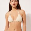 Push-up bikini top with lightly padded cups and underwire to guarantee support and provide volume. The style features a bright fabric with a silky effect. Fixed Shoulder Straps. Rear closure with double adjustment hook.