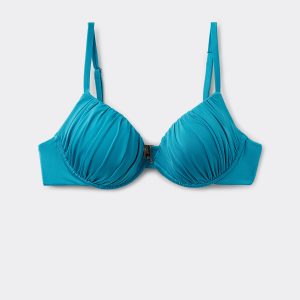 Push-up bikini top with lightly padded cups and underwire to guarantee support and provide volume. The style features a bright fabric with a silky effect. Fixed Shoulder Straps. Rear closure with double adjustment hook.