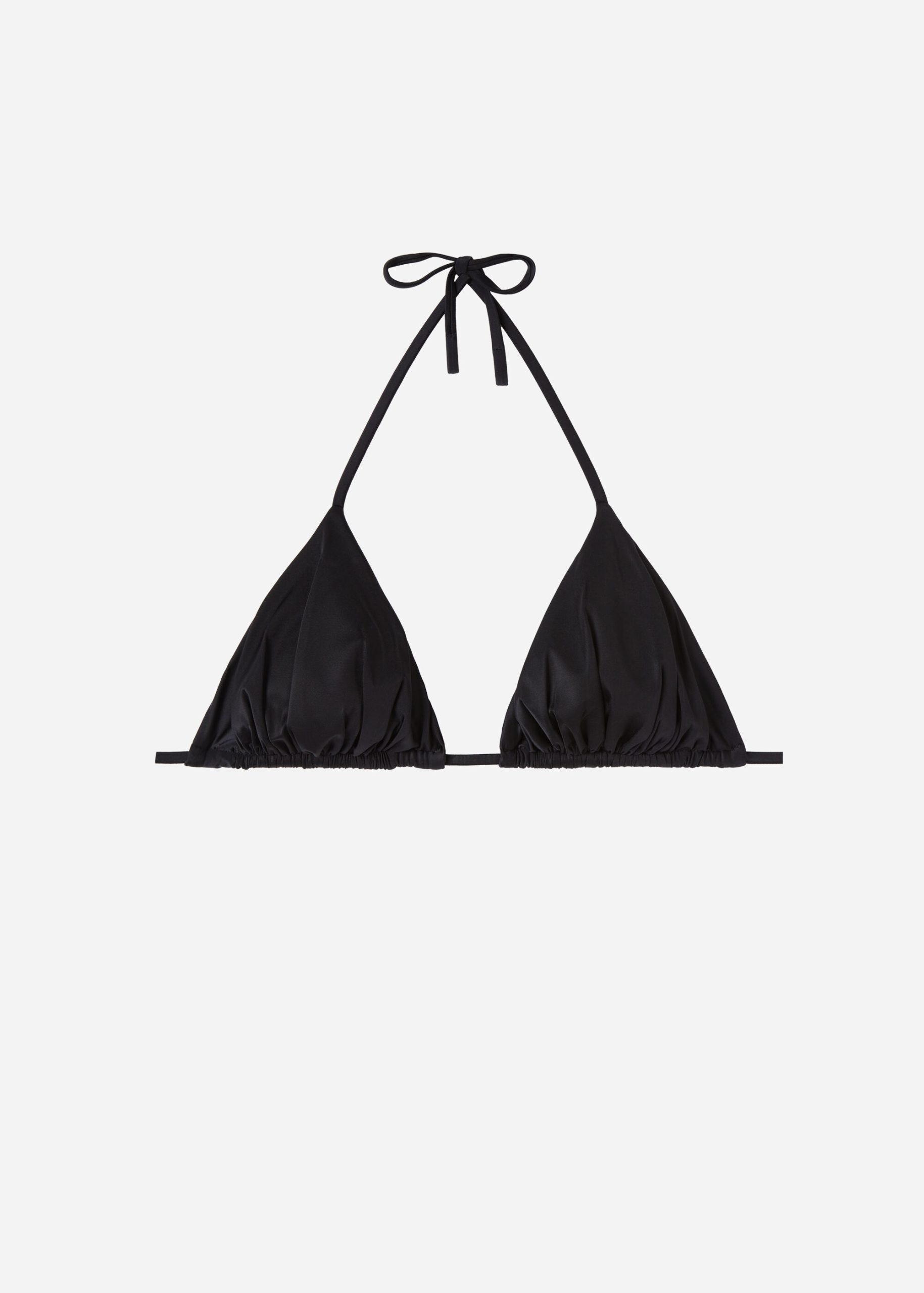 Removable Padding Triangle Swimsuit Top Shiny Satin