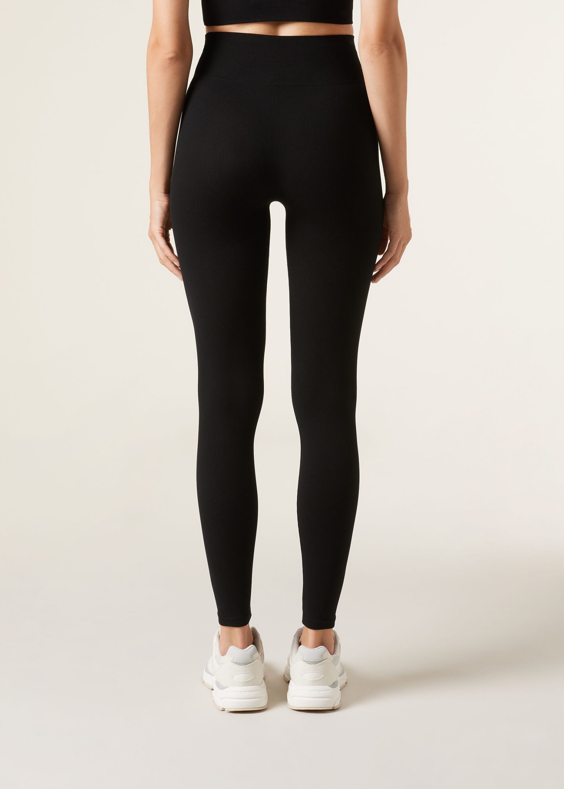 Seamless workout leggings in soft and comfortable ribbed opaque fabric. These ribbed leggings feature a high comfortable waist and are ideal for sports activities, offering optimal support and a perfect fit.