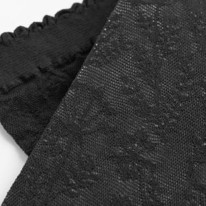 Women’s mesh 70 denier short socks with soft scalloped trim with a romantic all over floral pattern.