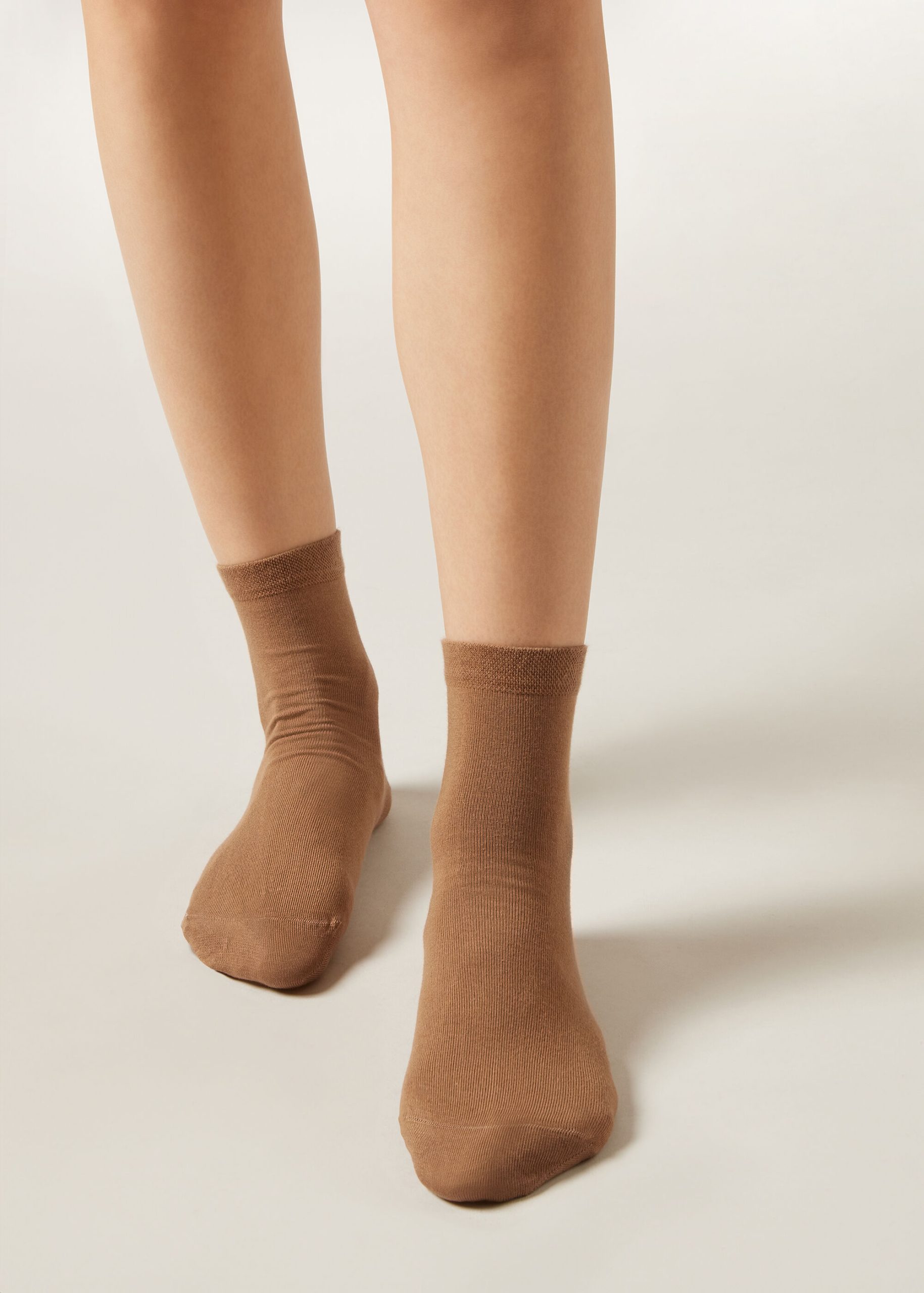 Women’s short socks in soft cotton, featuring an elegantly trimmed cuff.