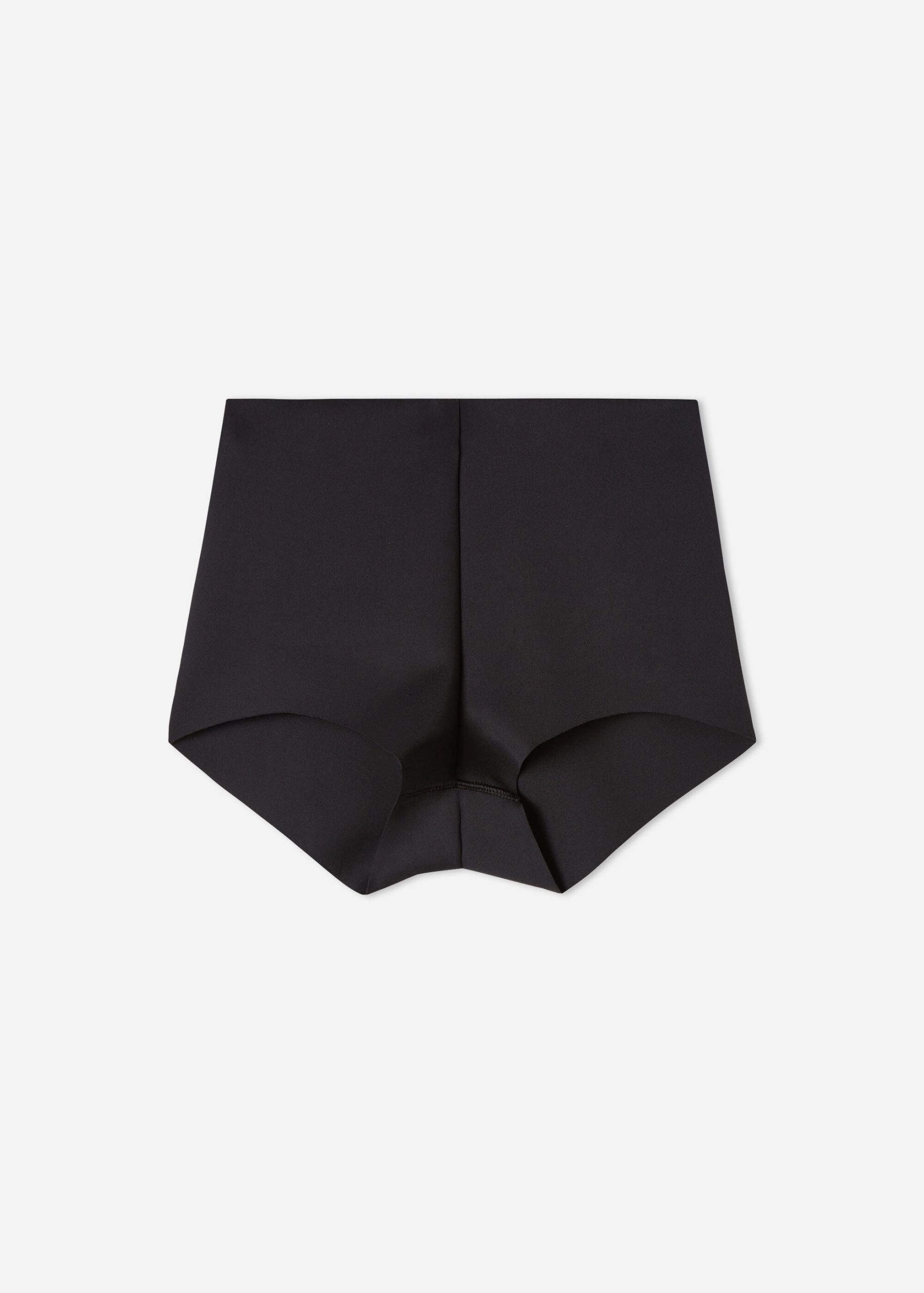 Women’s oversized fit culottes made in opaque, soft touch stretch fabric. Unfinished hems and comfortable elastic waist.