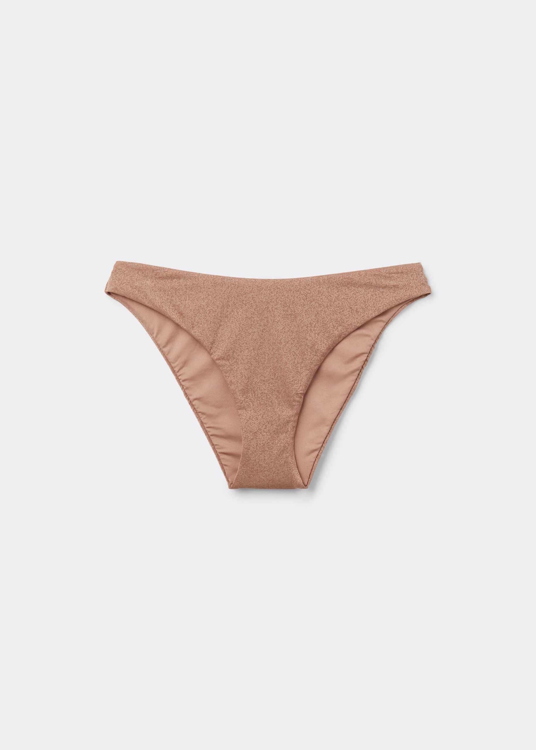 Fully lined bikini bottoms. The slightly rounded waist at the front allows for both a classic or more high-cut fit, depending on one’s physique. Soft fabric with shiny lamé thread.