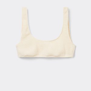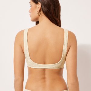 Sporty tank-style bikini top with no padding or underwire for a natural effect. The style features a crinkle fabric with a three-dimensional effect. Fixed straps and closed back.
