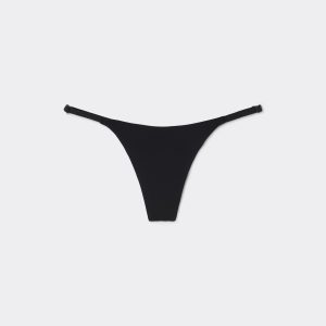 Thong bikini bottom with adjustable thin sides. The slightly rounded front allows for wearing it either as normal or with the legs higher on the sides to show off the physique. The extremely soft fabric makes it pleasant to wear, offering a light and comfortable feel on the skin. Fully lined with invisible seams.