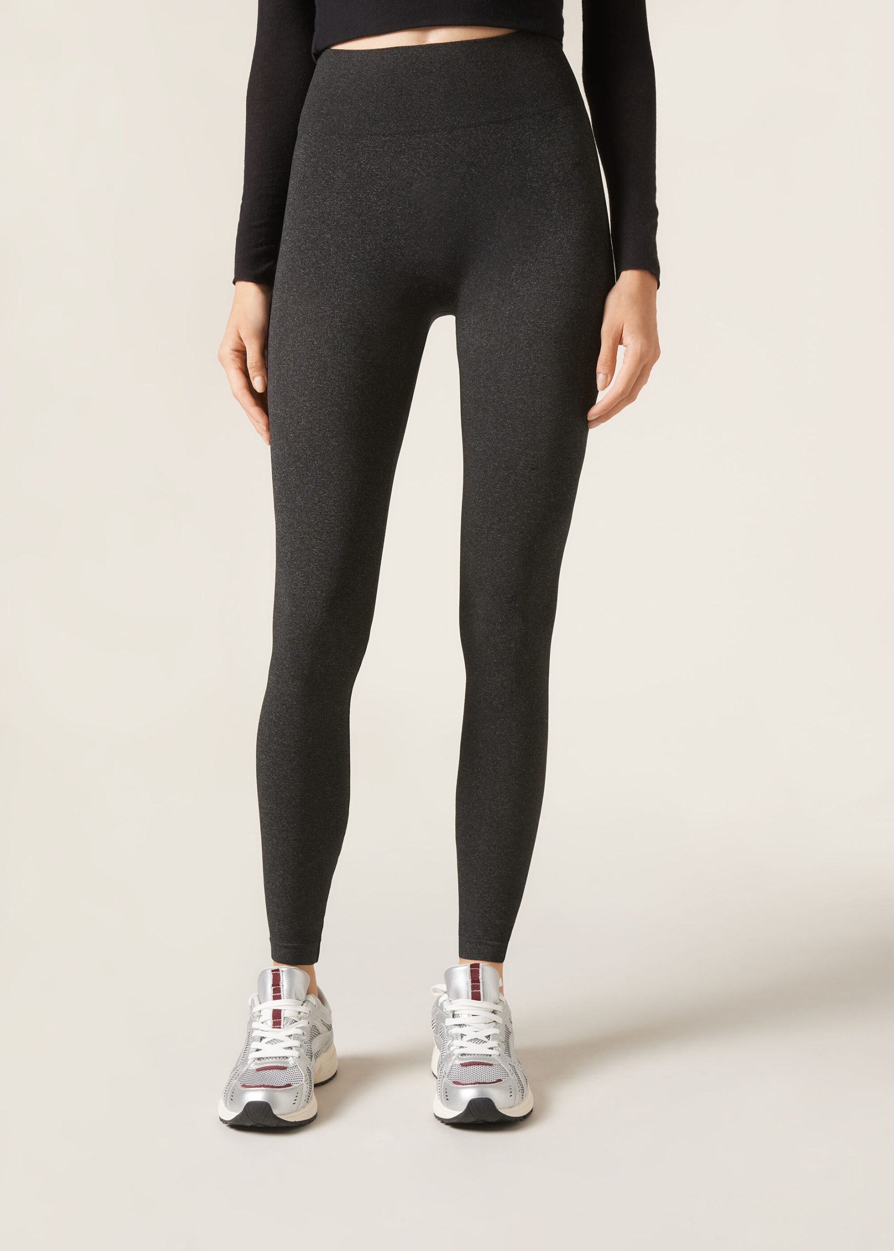 Super opaque leggings in microfiber with a seamless top, comfort waistband and soft cuffs on the bottom.